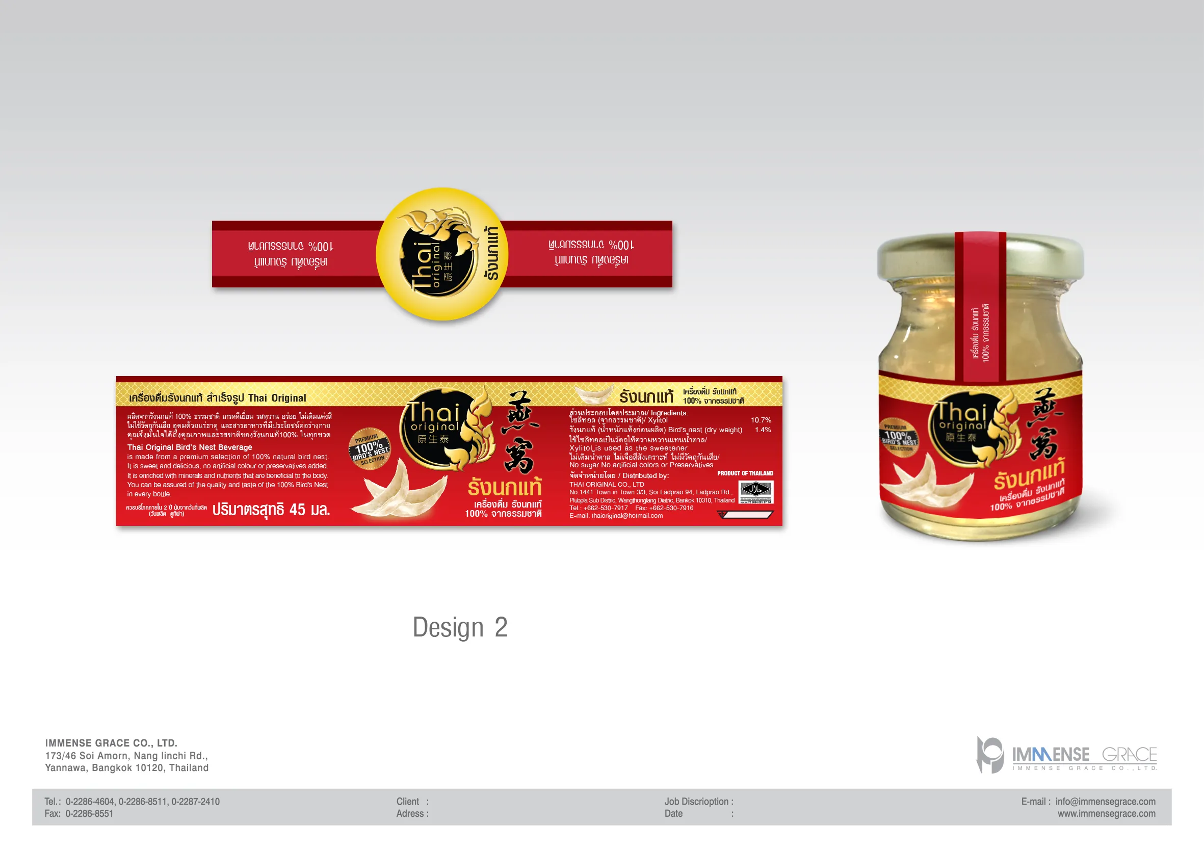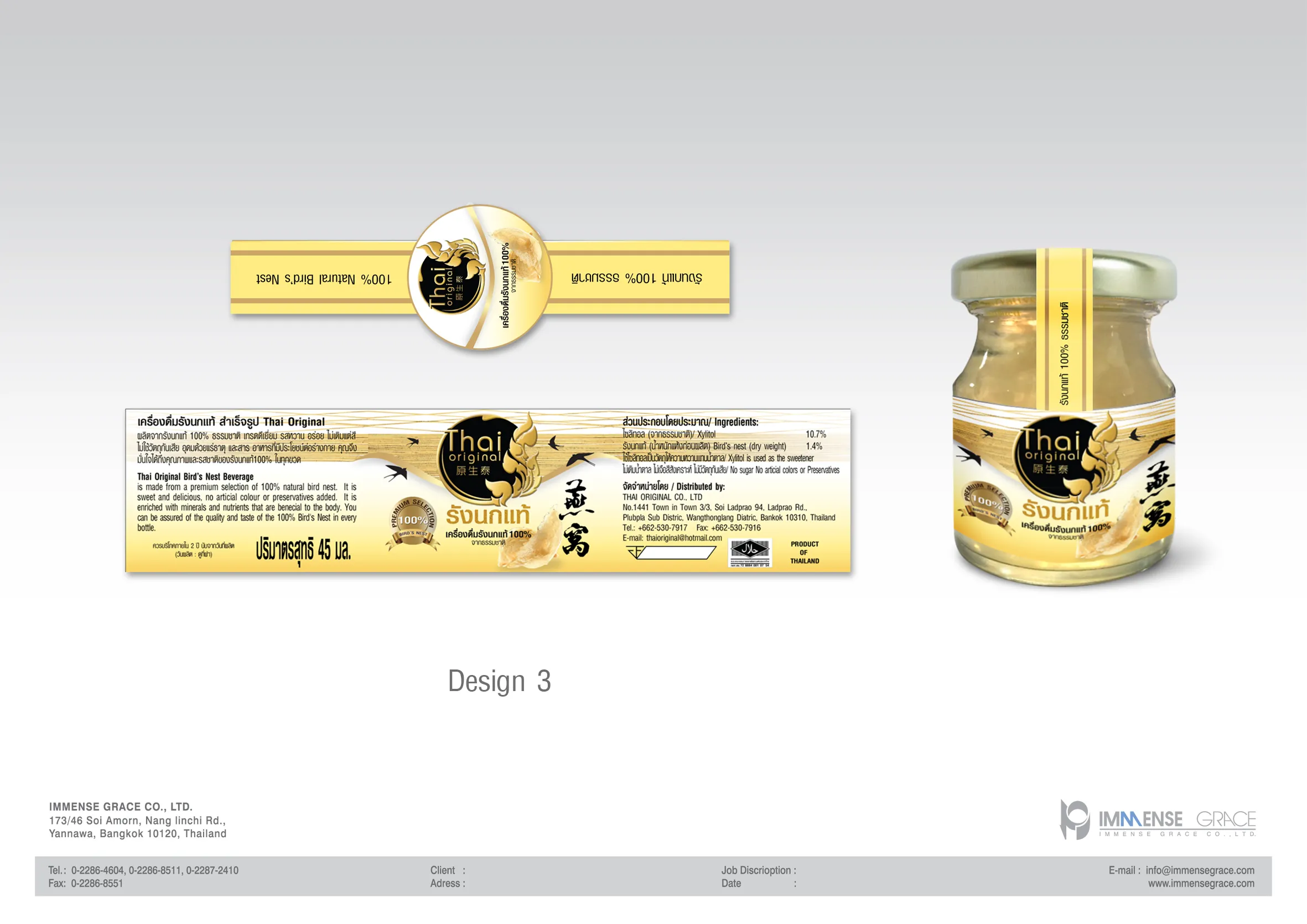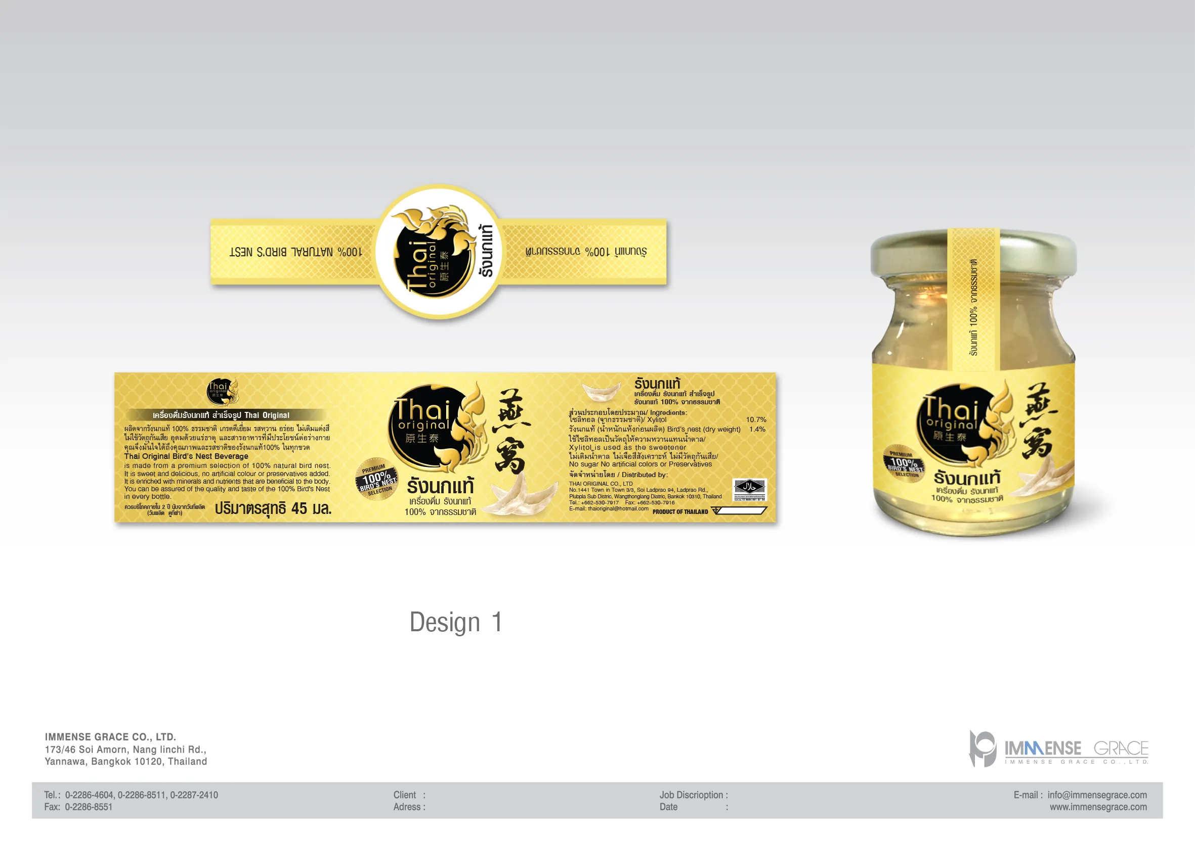 ผลงานฉลากบรรจุภัณฑ์ออกแบบ จัดพิมพ์ ฉลาก สติ๊กเกอร์เครื่องดื่มรังนก Posted on มีนาคม 4, 2024มีนาคม 4, 2024 by immensegrace ออกแบบ จัดทำอาร์ตเวิร์ค ฉลาก กระป๋องน้ำผลไม้ Asia (ต่างประเทศ) ออกแบบ จัดพิมพ์ ฉลาก สติ๊กเกอร์เครื่องดื่มรังนก