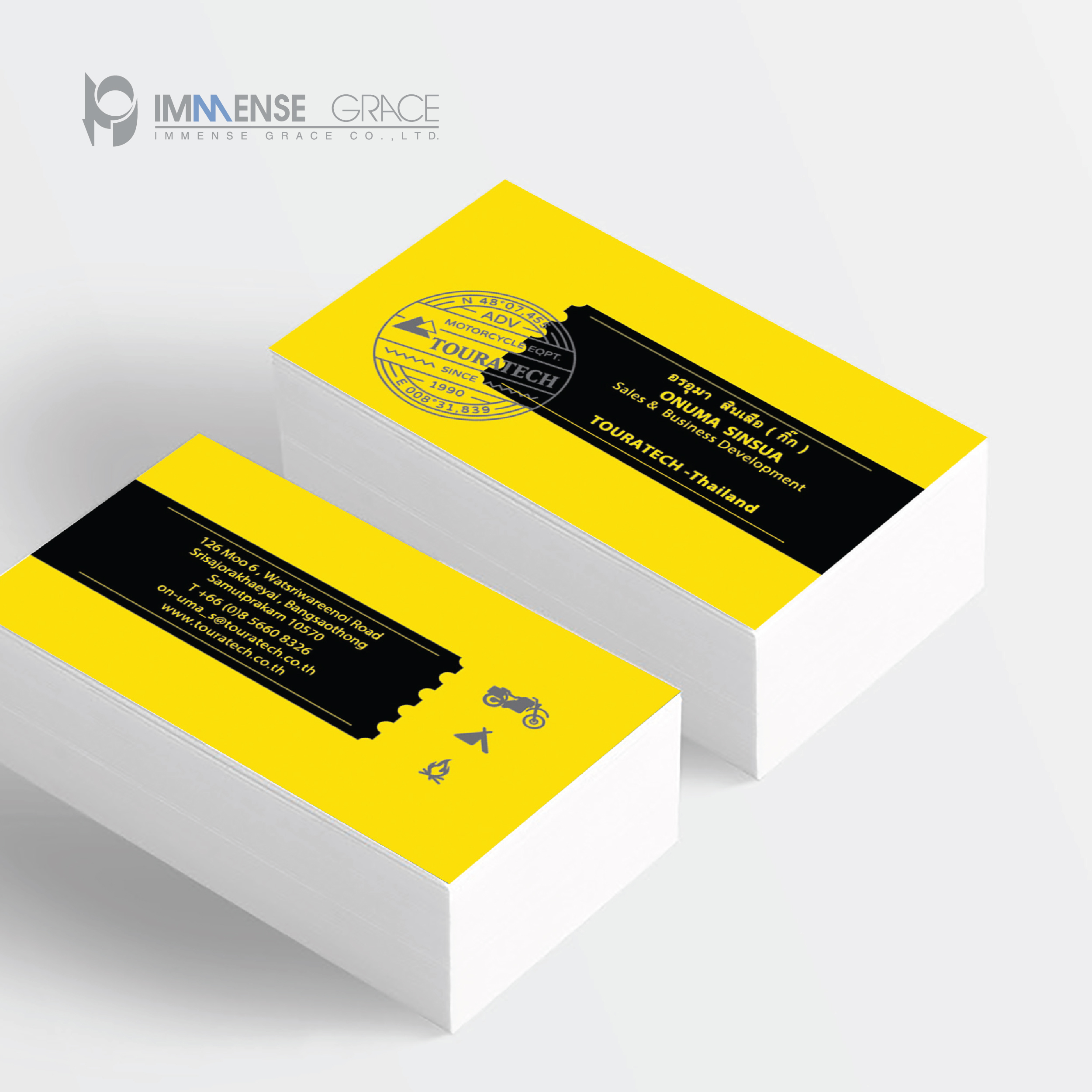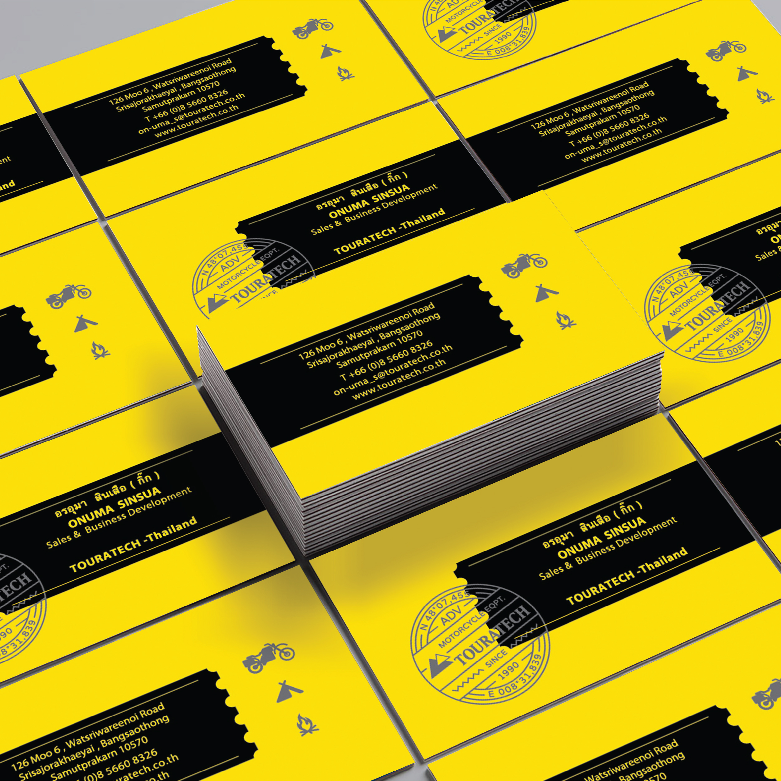 ผลงานนามบัตรออกแบบ จัดพิมพ์ นามบัตร Touratech Thailand : การ์ด PVC กันน้ำ, ไม่ขาด Posted on มกราคม 4, 2024มกราคม 26, 2024 by immensegrace ออกแบบ จัดพิมพ์ นามบัตร BOZ : การ์ดอาร์ตพิมพ์สีดำ เคลือบ PVC ด้าน & Spot U.V. ปั๊ม K. ทอง ออกแบบ จัดพิมพ์ นามบัตร ADDA Footwear : การ์ด PVC กันน้ำ, ไม่ขาด