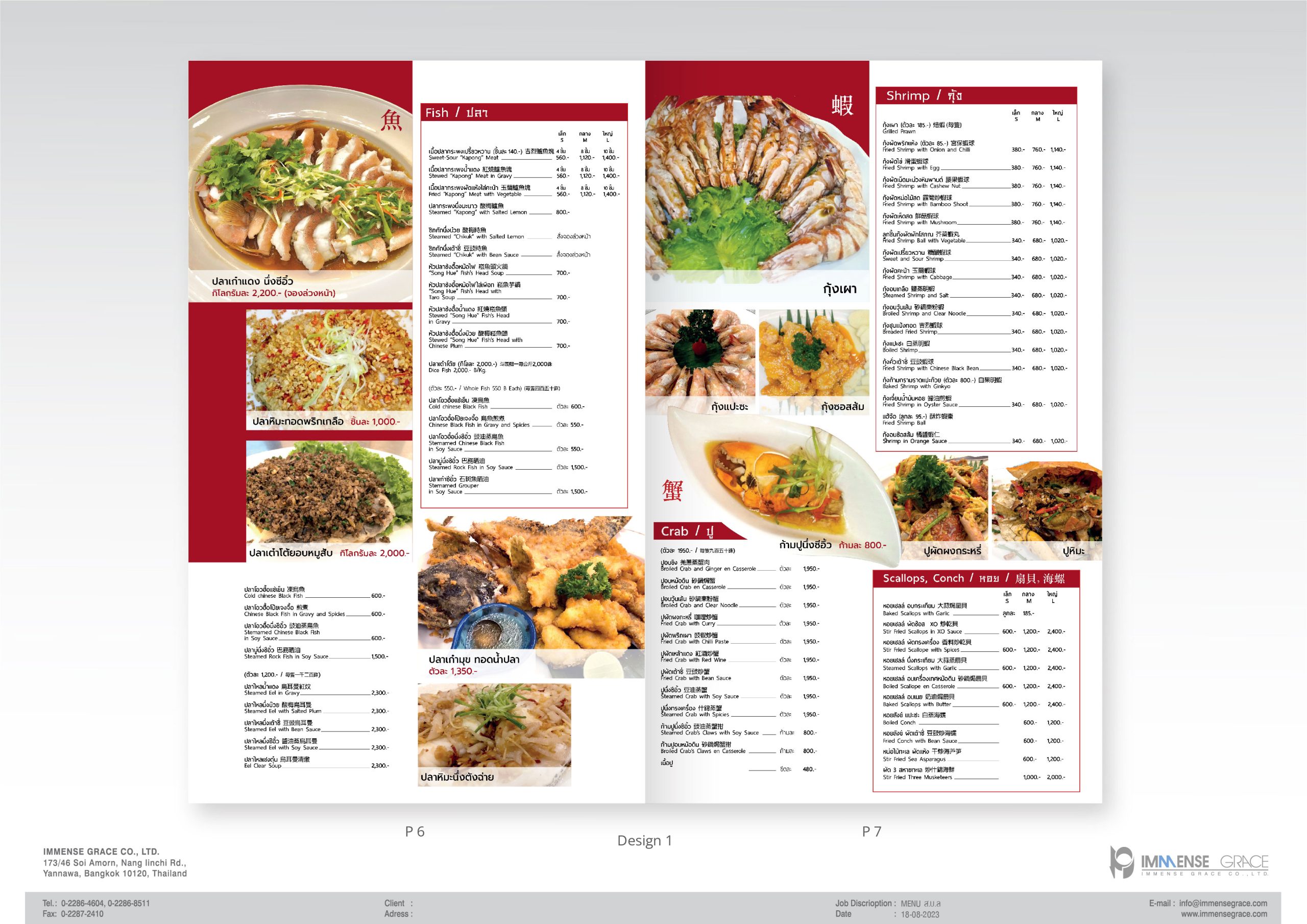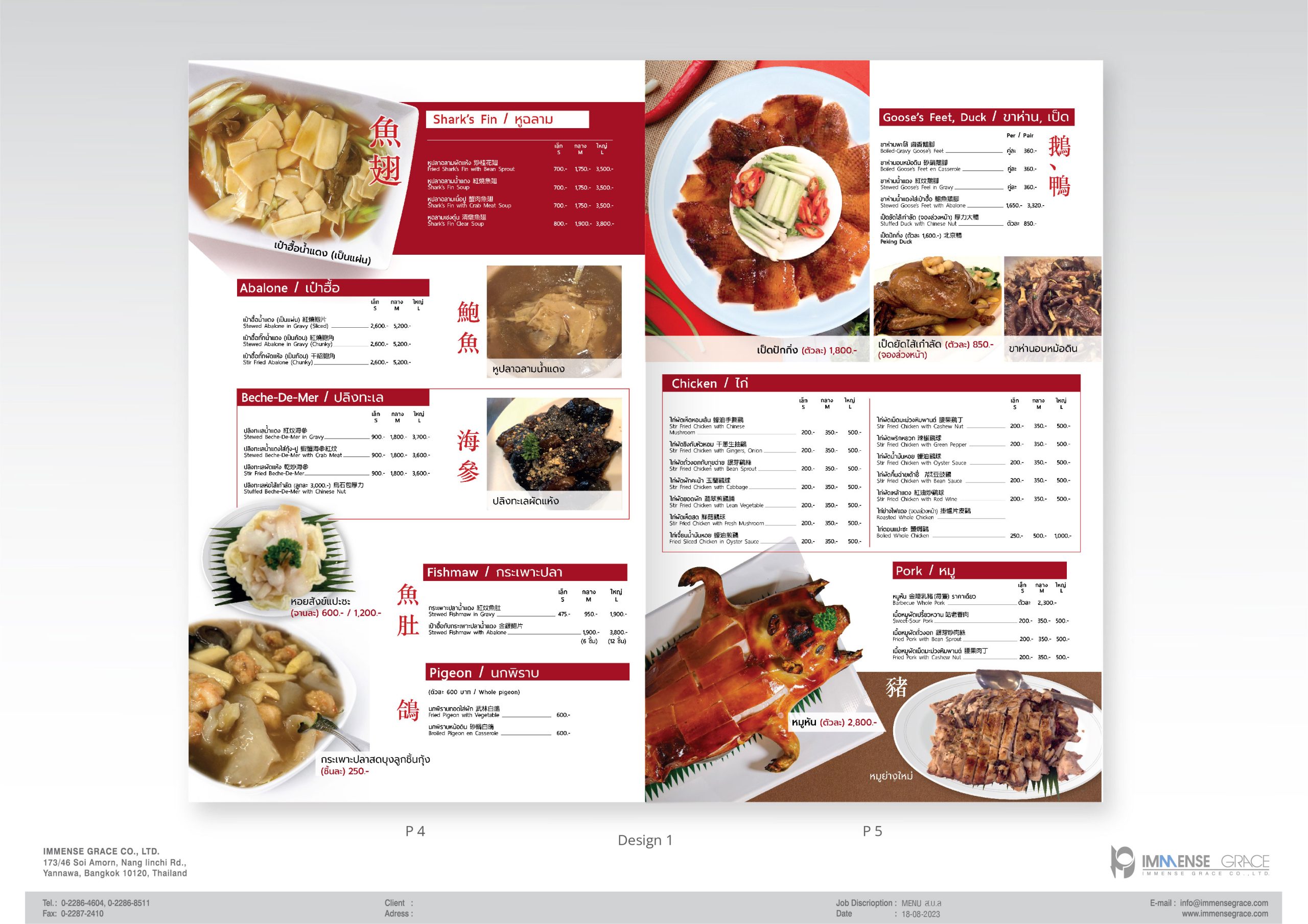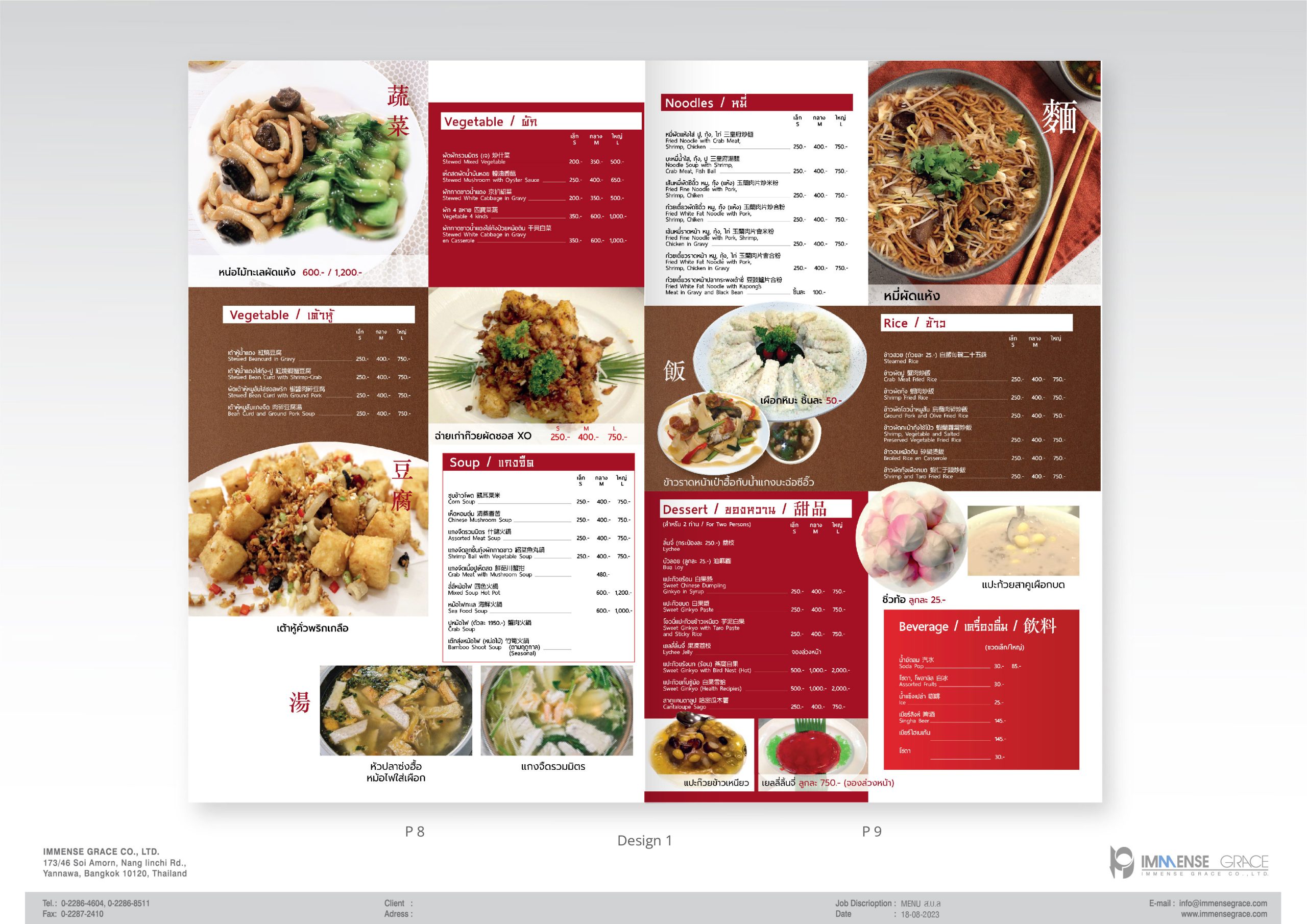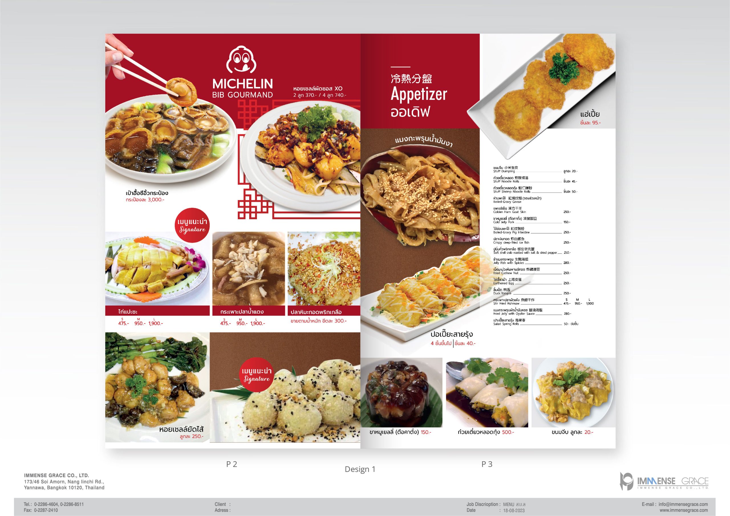 ผลงานปกแฟ้ม สมุดโน๊ต เมนูออกแบบ จัดพิมพ์ เมนู ภัตตาคาร ส.บ.ล. Posted on ธันวาคม 3, 2023มกราคม 26, 2024 by immensegrace ออกแบบ จัดพิมพ์ เมนู สวนลุงหมง ออกแบบ จัดพิมพ์ เมนู ภัตตาคาร ส.บ.ล.